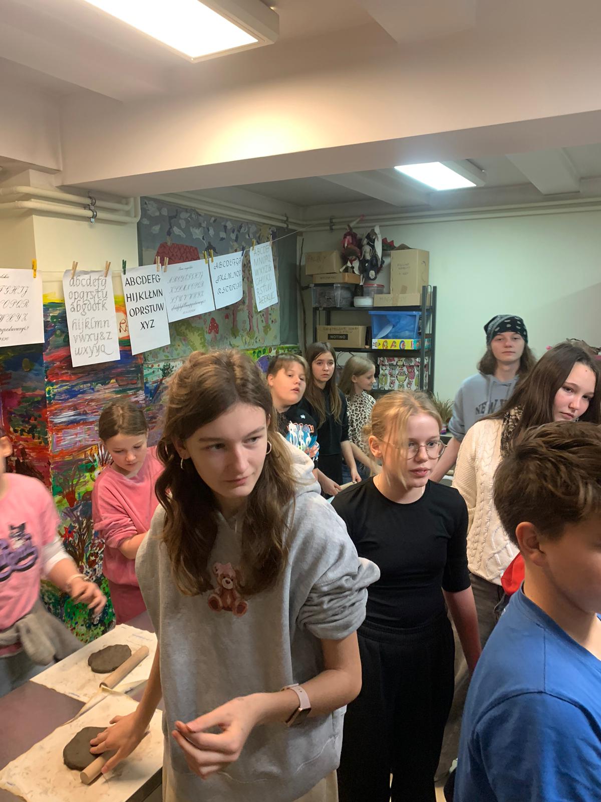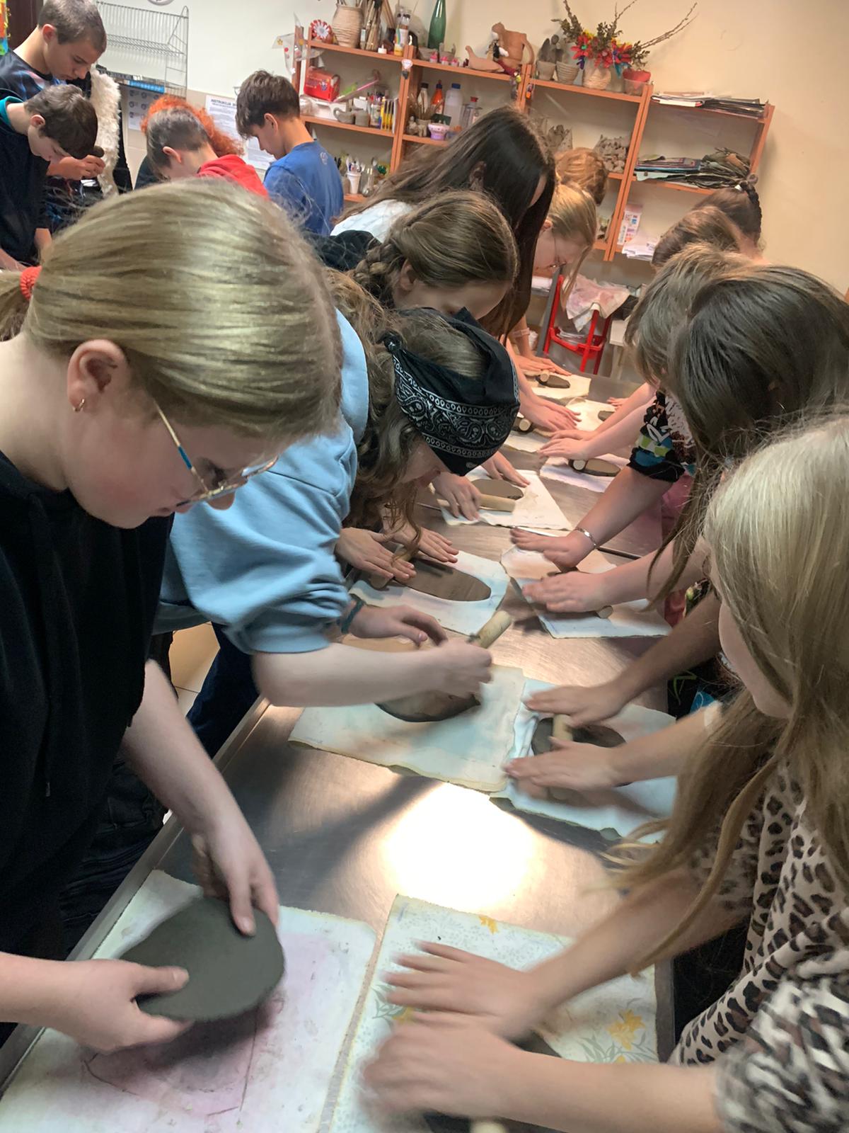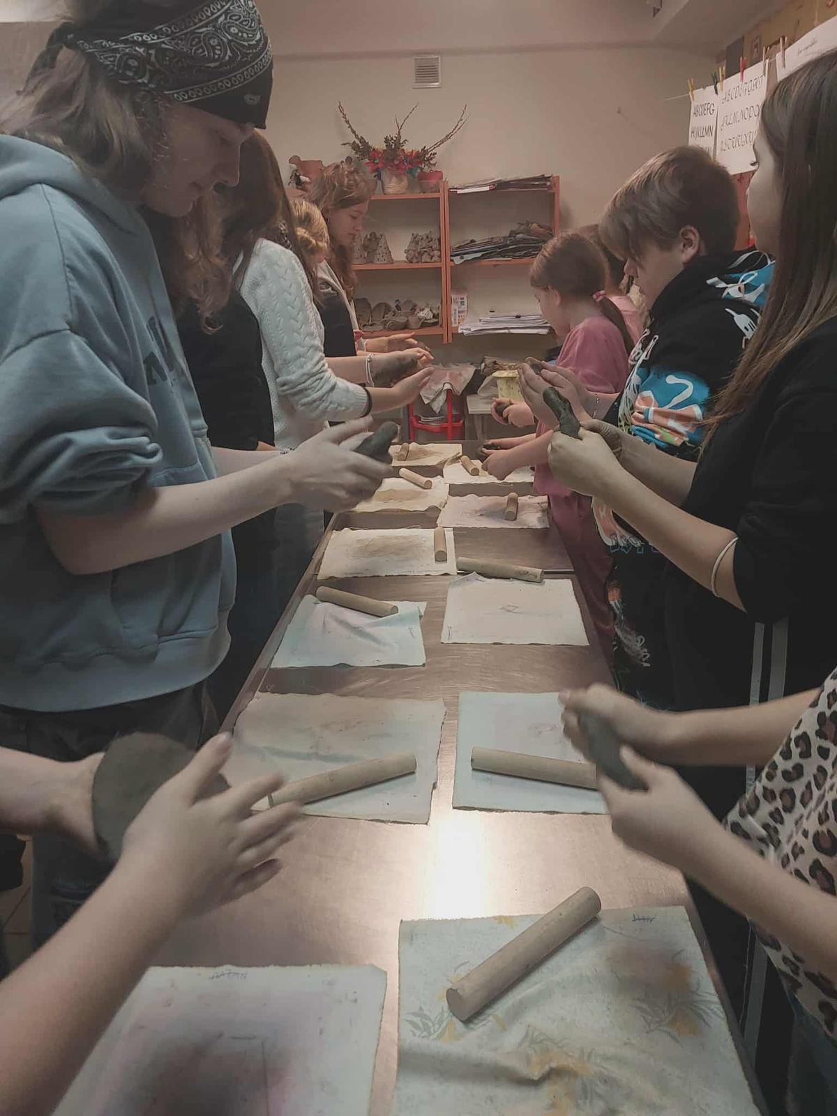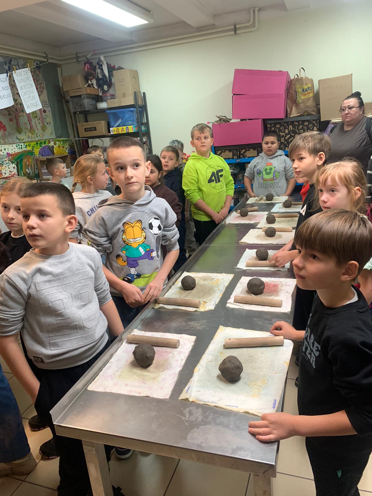 Na początek udało nam się przenieść w czasie: zwiedziliśmy wystawę „Odkrywanie przeszłości” — bogatą kolekcję zabytków archeologicznych, wśród których można zobaczyć naczynia gliniane, fragmenty dawnych garnków i mis, narzędzia, a także przedmioty codziennego użytku mieszkańców Ziemi Lęborskiej na przestrzeni tysięcy lat. Największą atrakcją okazały się warsztaty — dzieci z zapałem lepiły choinki z gliny. To była doskonała okazja, by na chwilę poczuć się jak dawni rzemieślnicy i zrozumieć, że dawne garnki, misy czy naczynia nie „rosły same z ziemi” — ktoś musiał je stworzyć, formując z gliny, dając im kształt i duszę. Ten proces był chyba najciekawszy dla naszych młodych uczestników.