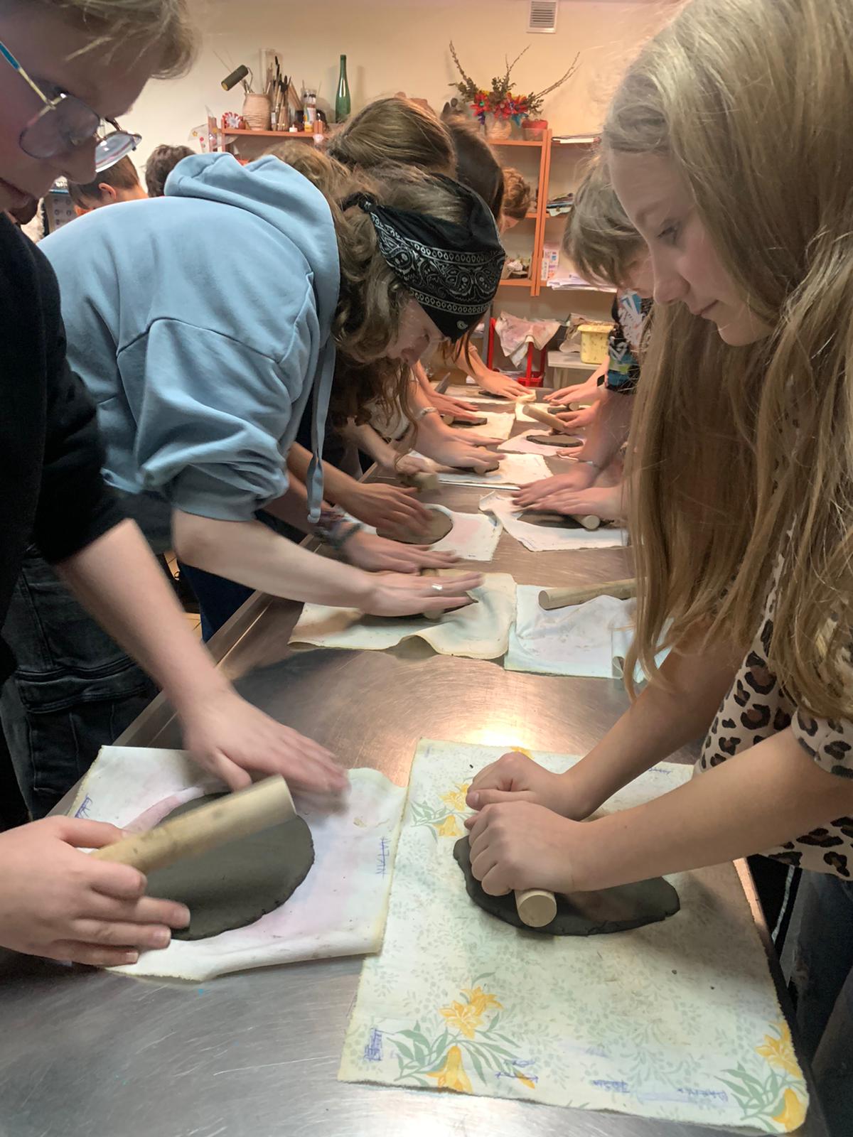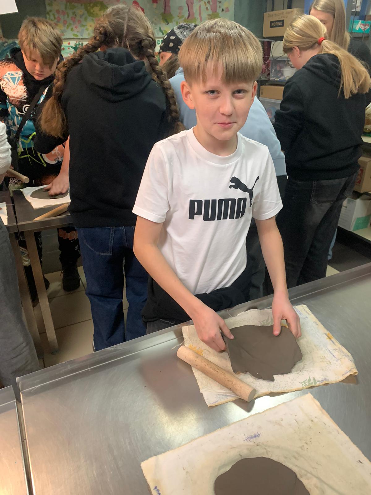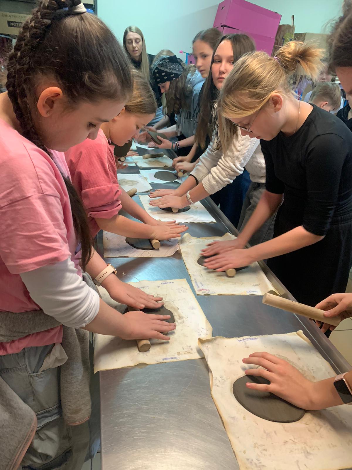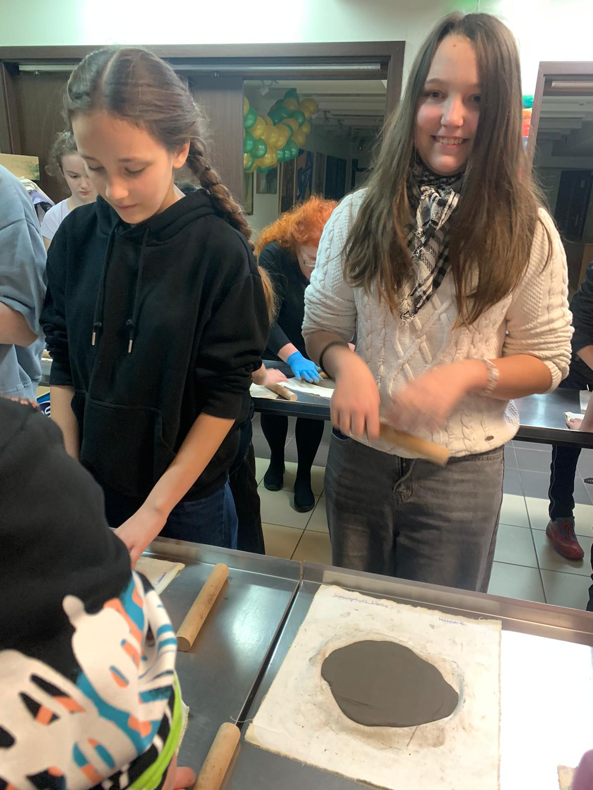 Na początek udało nam się przenieść w czasie: zwiedziliśmy wystawę „Odkrywanie przeszłości” — bogatą kolekcję zabytków archeologicznych, wśród których można zobaczyć naczynia gliniane, fragmenty dawnych garnków i mis, narzędzia, a także przedmioty codziennego użytku mieszkańców Ziemi Lęborskiej na przestrzeni tysięcy lat. Największą atrakcją okazały się warsztaty — dzieci z zapałem lepiły choinki z gliny. To była doskonała okazja, by na chwilę poczuć się jak dawni rzemieślnicy i zrozumieć, że dawne garnki, misy czy naczynia nie „rosły same z ziemi” — ktoś musiał je stworzyć, formując z gliny, dając im kształt i duszę. Ten proces był chyba najciekawszy dla naszych młodych uczestników.